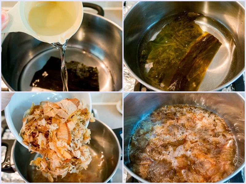 Tảo bẹ Kombu, cá ngừ bào Katsuobushi;
